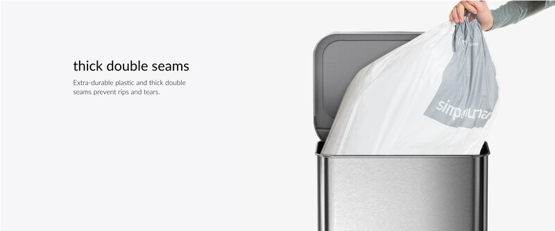- Simplehuman (CODE H) custom trash bags: perfectly matched with the simplehuman trash can. When the trash can lid is closed, the bag can be completely hidden inside the trash can.