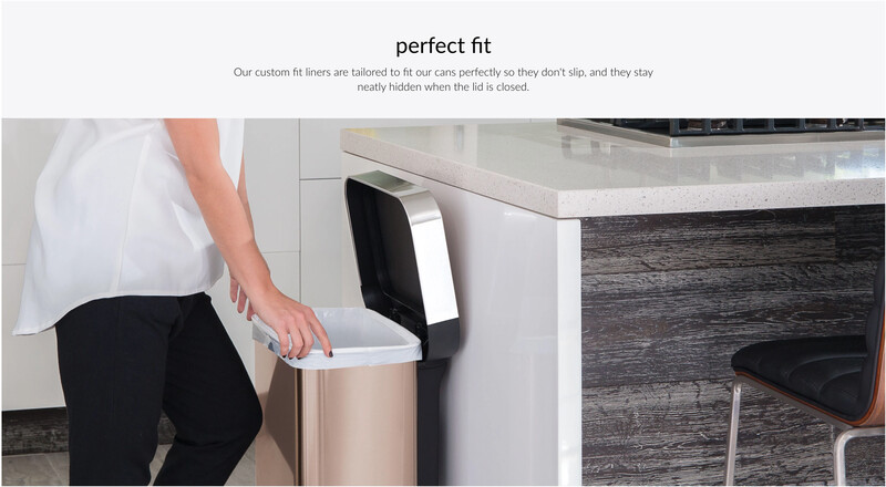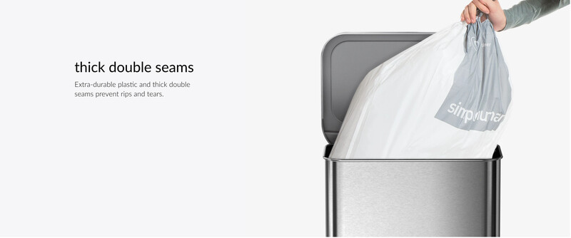 - Simplehuman (CODE L) custom trash bags: perfectly matched with the simplehuman trash can. When the trash can lid is closed, the bag can be completely hidden inside the trash can.