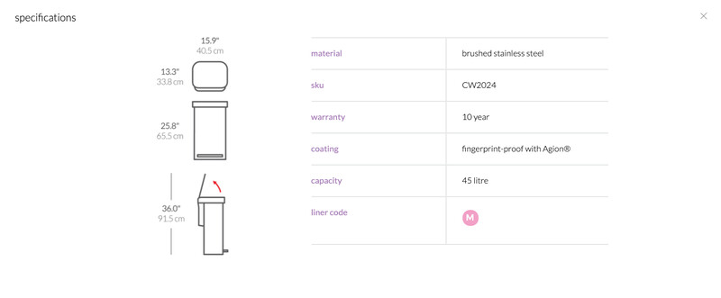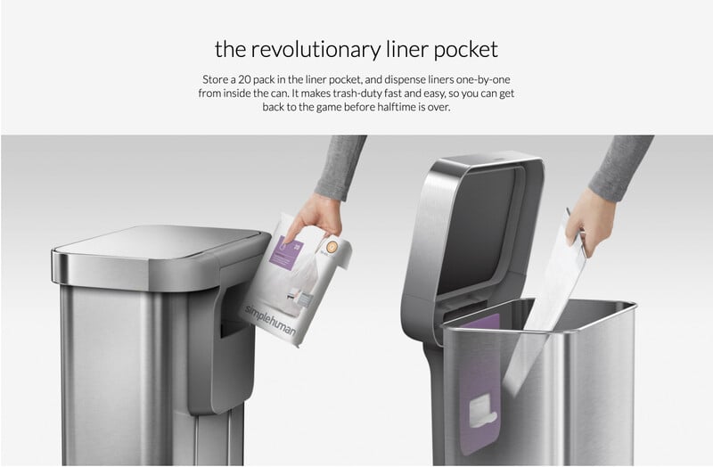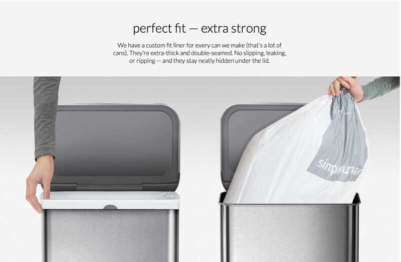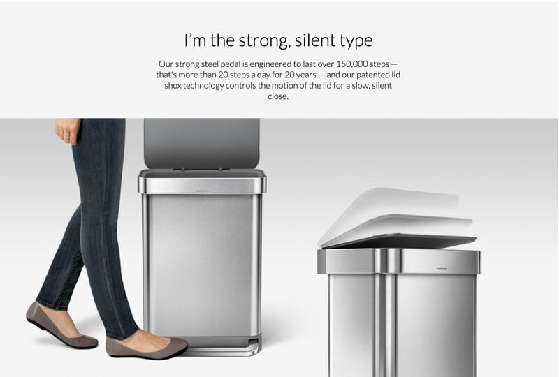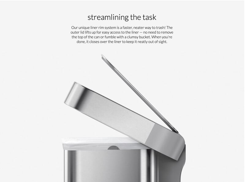 - Simplehuman Lid Shox 技術可讓桶蓋慢慢輕聲地關閉