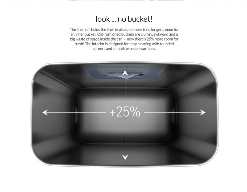 - 創新的一體式防漏設計,無需內桶,可提高垃圾容量達25%